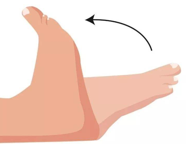 动作要领:平卧或坐于床上,大腿放松,然后缓慢的尽最大角度地做踝关节跖屈动作,也就是向上勾起脚尖,让脚尖朝向自己,维持3s左右,之后再向下做踝关节背伸动作,让脚尖向下,保持3s左右。