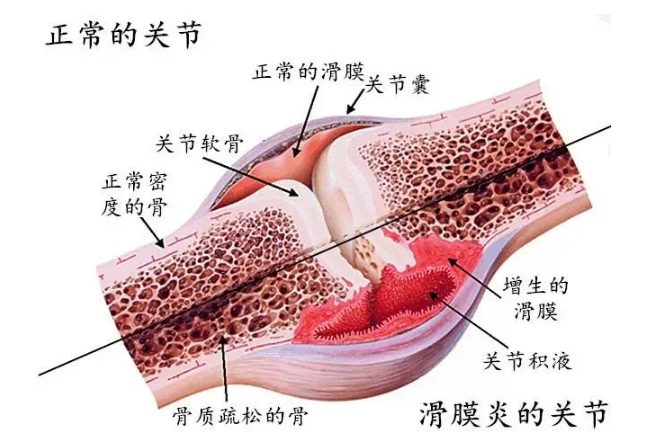 另一原因是风湿,类风湿或强直性脊柱炎等疾病侵犯关节的滑膜,引起急性滑膜炎,或者迁延不愈最后转变成慢性滑膜炎。