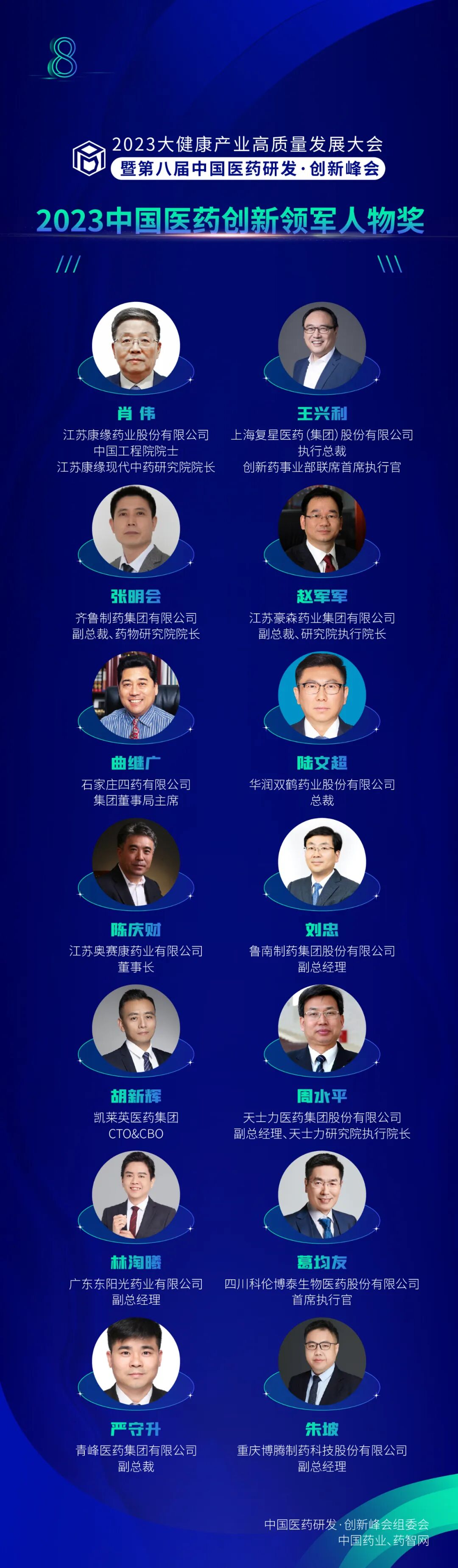 为颂扬科学探索精神,推动医药产业创新发展,今年中国医药研发创新峰会增设中国医药创新领军人物奖,以表彰为中国医药研发创新做出突出贡献,并拥有年度成就的医药创新领军人物。