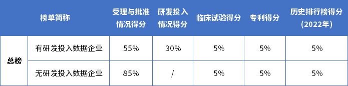 本排行榜评分规则由药品研发实力排行榜专家委员会、2023中国医药研发·创新峰会组委会制定,根据相关数据计算而得。
