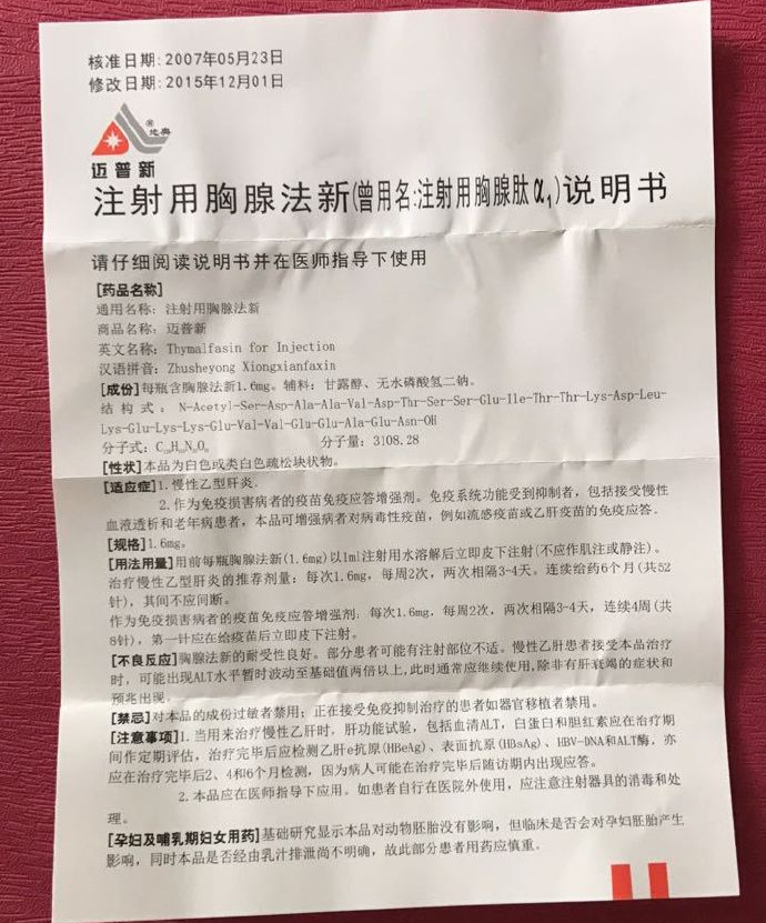 本例中的胸腺肽,就是属于所谓的增强免疫力的药,其实根本就没什么效,我们需要知道一下。