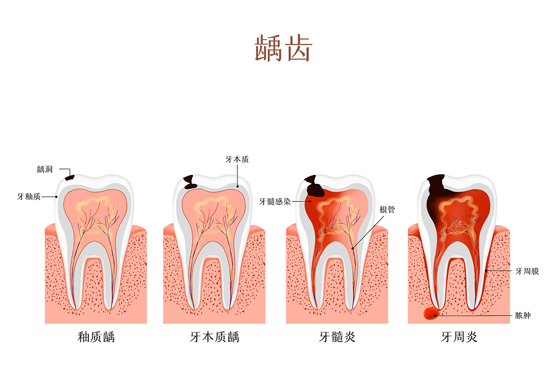 牙齿中间有一空腔,内有血管、神经、细胞等牙髓组织,通过细小的根尖孔与牙周相连。当患上牙髓炎时,牙髓组织就会出现红肿、疼痛、发热等现象。