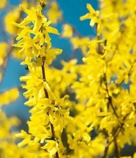 连翘就是春天开小黄花的那个植物,我们也经常能够见到它,跟迎春花有点像。