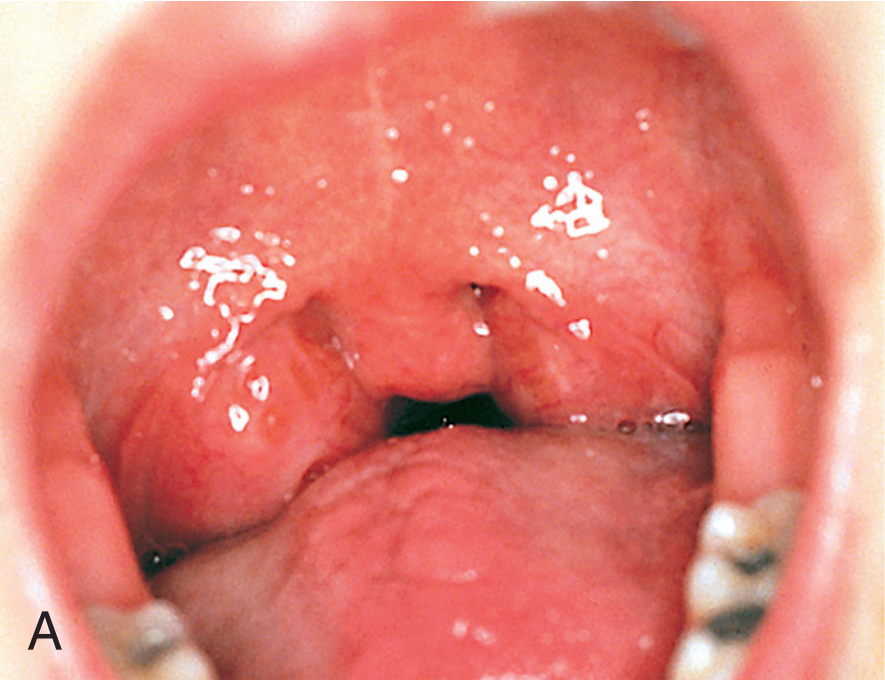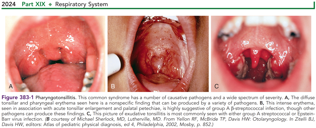 这幅图片摘自《尼尔逊儿科学》的《扁桃体炎》章节。