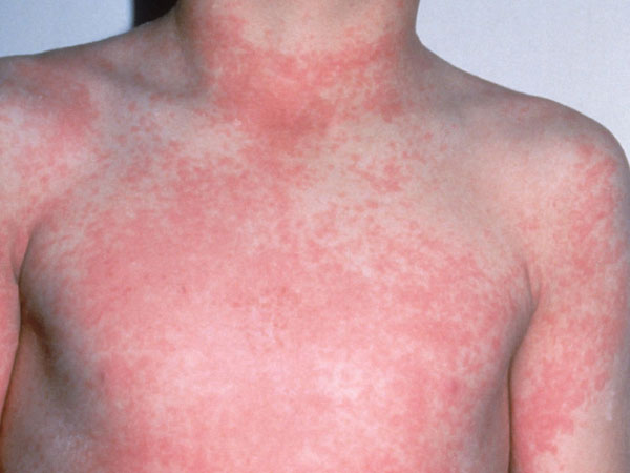 如果患儿出现特殊磨砂样粗糙皮疹(可能会瘙痒),则可能性相当大;