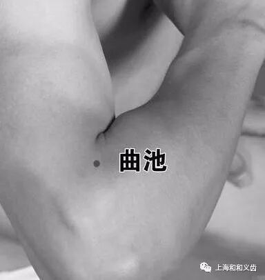 第二,按压曲池穴