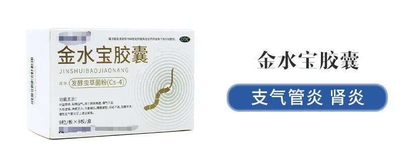 金水宝胶囊的主要成分为冬虫夏草,归肾、肺二经,既能养肺阴,又能补肾阳,针对肺肾两虚所致的久咳虚喘,神疲乏力,腰酸腿软,月经不调等症,常用于治疗慢性支气管炎,慢性肾炎及肾衰等。
