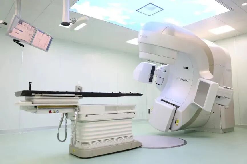 精准放疗系统,隐形的手术刀。全世界先进的可进行一键式非共面放射外科技术HyperArc的直线加速器,广泛应用于全身各部位的肿瘤治疗,尤其适用于对精准照射要求高的脑部肿瘤,无需开颅治疗,大大降低了对健康组织的损伤,缩短了治疗时间。被业内誉为速光刀、隐形手术刀。