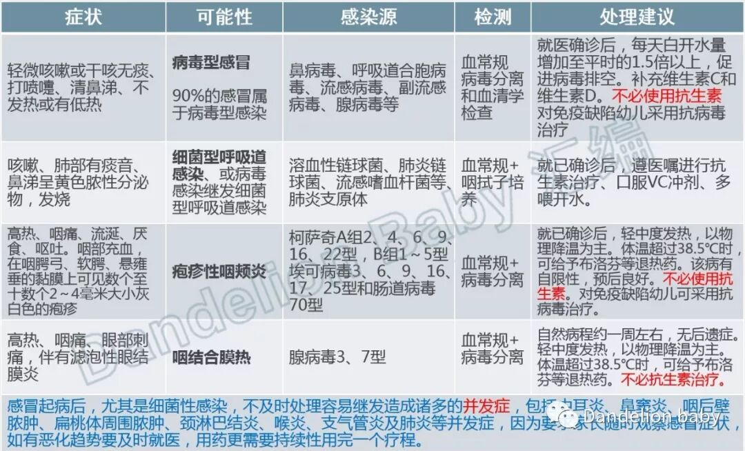 首先都要多喝水,但是对病毒性、细菌性、以及合并性感染还是要区别对待。如表: