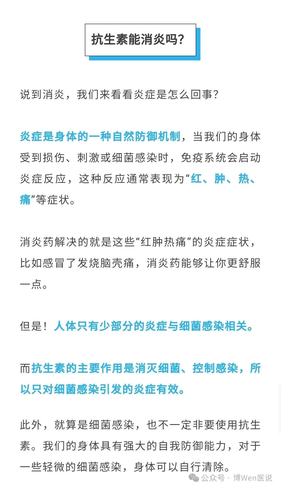 看完这篇,你还会随口要消炎药吗?记住,抗生素不是万能钥匙,滥用可能带来超级细菌的反击。真正的消炎药其实只是控制炎症,而非杀菌!健康这件事,靠的可不是一时的药到病除,而是用对药、听医生、养好习惯。下次去医院,别再张口就要消炎药啦!保护抗生素,也是在保护我们自己的未来。——EassonWen