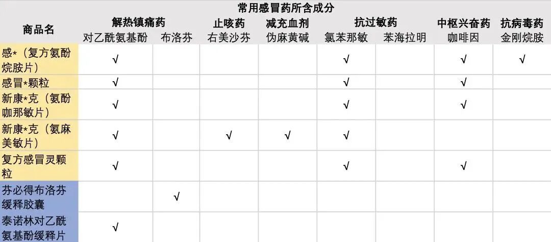 所以,大家在用药时,先去看看药品说明书,核对药物成分。