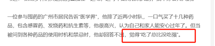 广州一大爷被问及为何囤药时,他说:吃了总比没吃强。