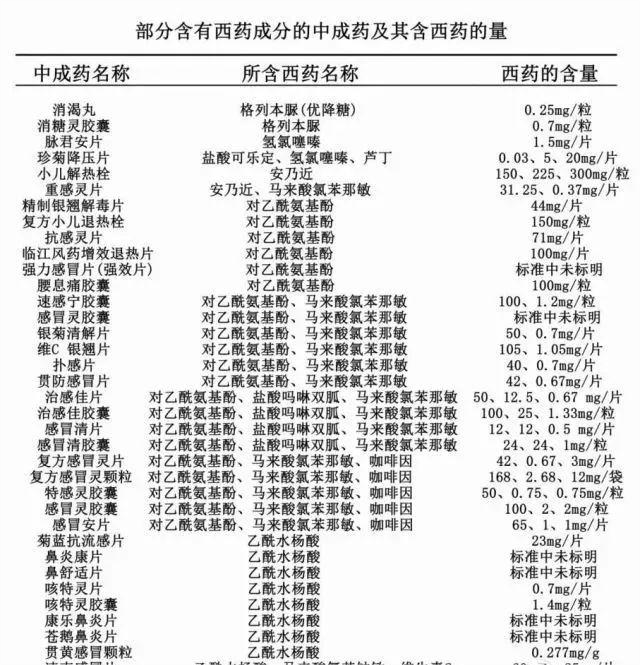 殊不知,很多中成药里也添加了对乙酰氨基酚等西药成份。