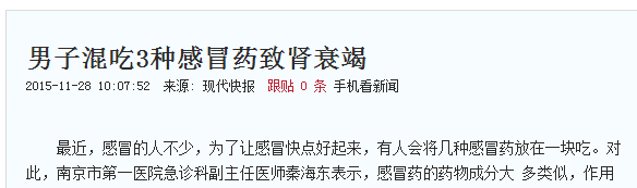 比如,有些感冒药和感冒药不能混在一起吃。