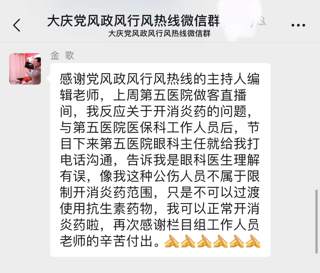 节目之后,我们第一时间和患者取得了联系,了解患者需求,然后对接诊医生诊疗情况进行调查。经过对接诊医生调查了解到,当时是患者爱人代替患者来医院开药,外用药给予了开具,口服药由于当时没有符合相应标准的用药,接诊医生解释了用药量后,便没有给患者开具,又因为我院曾就超量开具抗生素的情况对这位接诊医生进行过处罚,导致了接诊医生对于抗生素用量方面的规定存在一定的误解,进而产生了患者所理解的医生不给工伤患者开具抗生素的说法。
