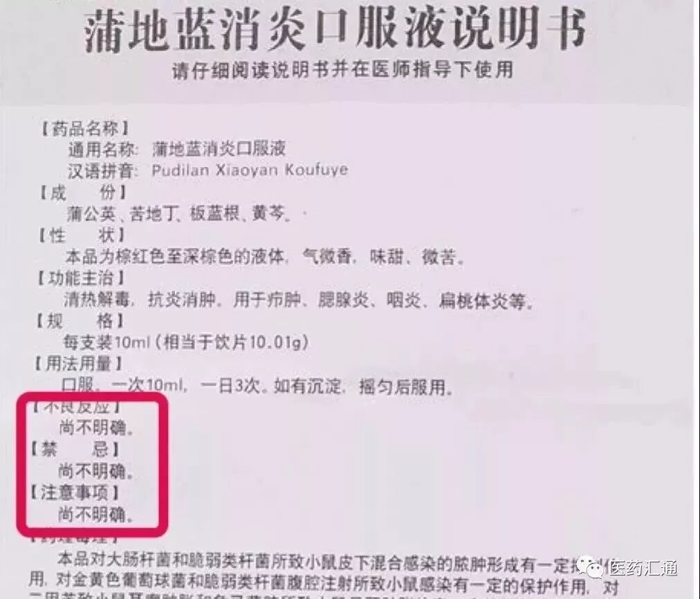 不知道你们有没有注意过蒲地蓝的成分和不良反应说明?