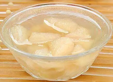 银耳梨膏:银耳10克(浸软洗净),梨100~150克(去核,切片),一起放入锅中,加适量水同煮,待银耳软烂,汤稠时加入冰糖15克,融化后温服。