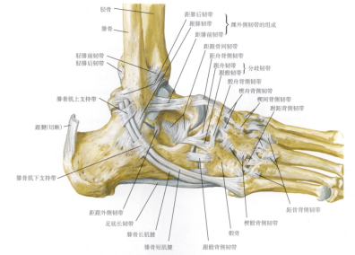 图4 踝关节骨与韧带示意图