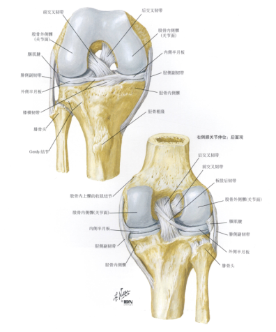 图3 膝关节骨与韧带示意图