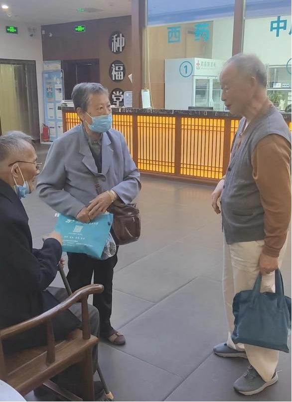 看到了送来锦旗的韩吾荣康复的这么好,一位等待配药的病友家属连忙走上前取经。