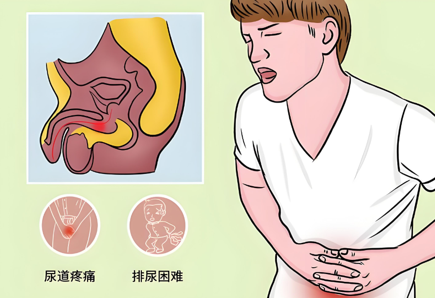 由于炎症因子刺激尿道口,前列腺炎患者可能会出现尿道口烧灼感、尿频、尿急等症状。应遵医嘱服用盐酸环丙沙星片、氧氟沙星片等药物治疗;