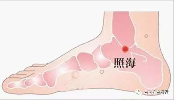位置:照海穴位于足内侧,内踝尖下方凹陷处。