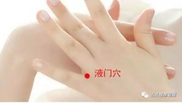 位置:液门穴位于手背部,无名指和小指的指缝间,顶着无名指的骨头,因此揉的时候比较痛。