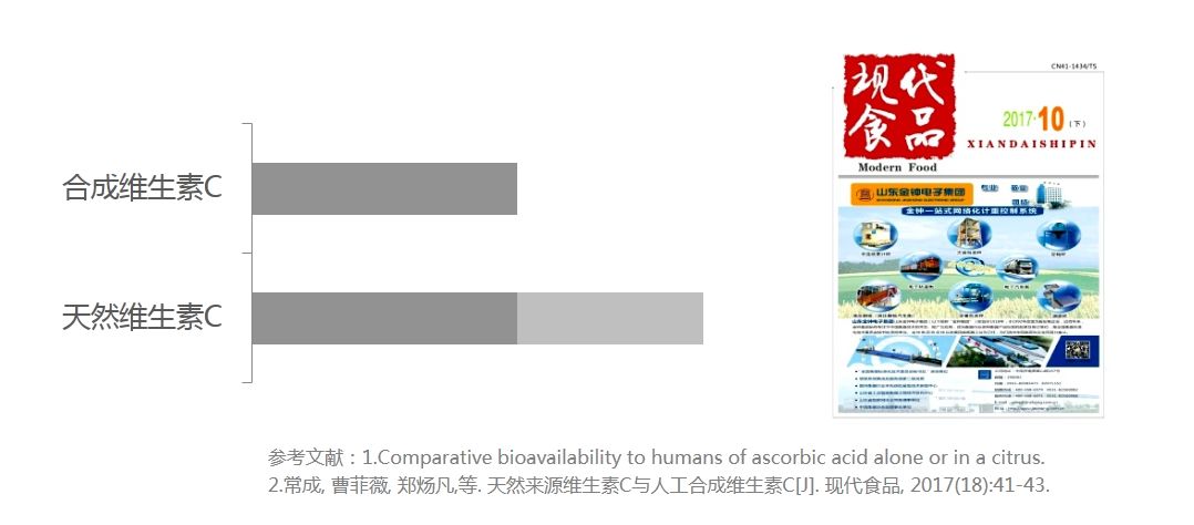 实验表明,天然维生素C的生物利用度较合成维生素C高35%。因此,天然维生素C产品与合成维生素C产品相比,具有更强大的抗氧化和清除自由基的能力,提升人体免疫力,提升维生素C吸收率和生物利用度,对人体有巨大的益处。