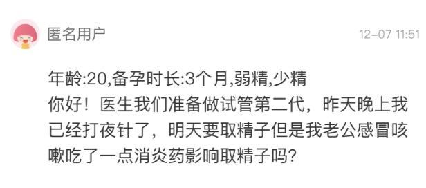 Q&A二代试管取精前,感冒吃了消炎药,有影响吗?