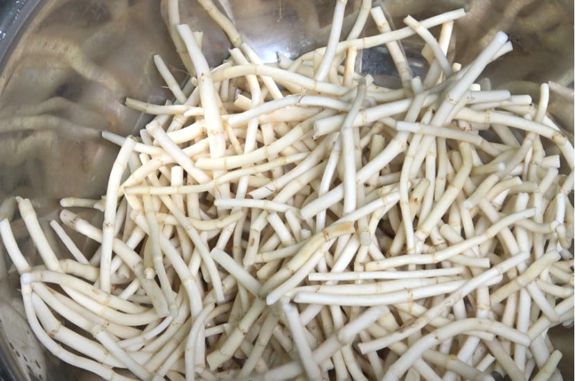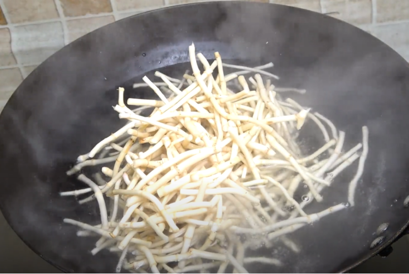 5、锅里烧水,水开加入少许盐,把折耳根放进去焯水,10秒左右捞出,去除土腥味即可。