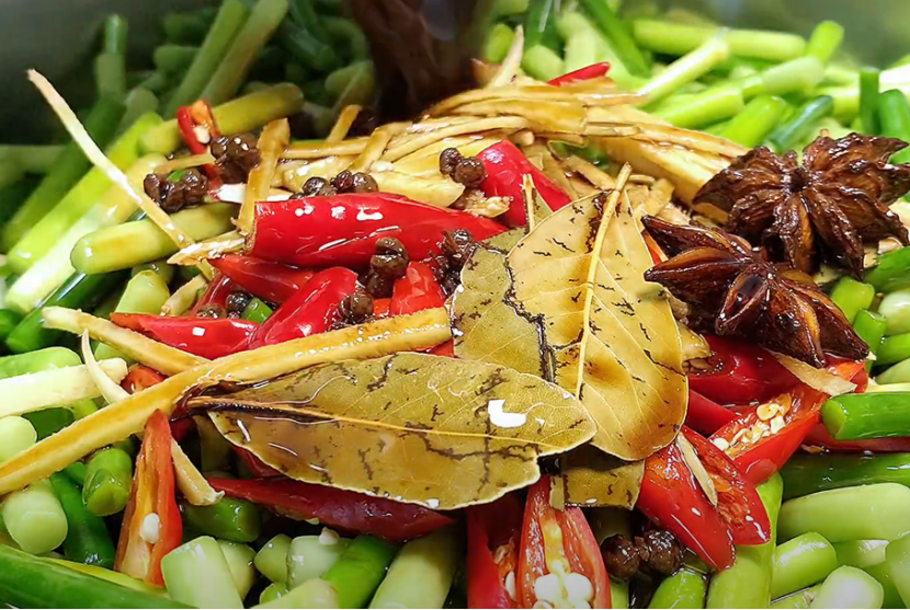 主要食材:蒜薹,辣椒,生姜,八角,陈醋等
