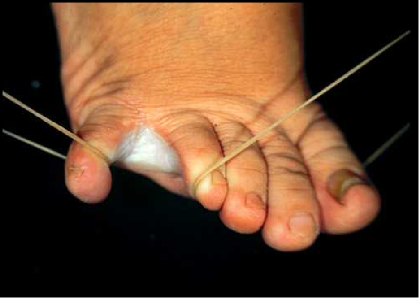 ①浸渍型:多见趾(指)间皮肤发白、糜烂、浸渍,边缘清楚,去除浸渍的表皮,留下潮湿的鲜红新生皮肤;