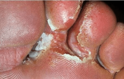 1.好发部位:好发于指/趾缝,足癣常以第3~4和4~5趾间多见。
