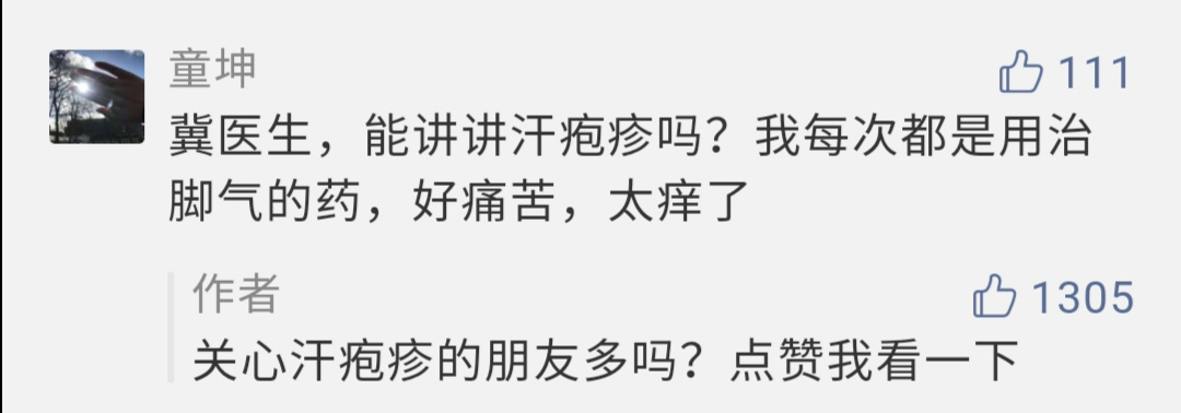 周一推送了(冀连梅 | 你离「根治」脚气,只差知道这8点!)后,留言区里要求科普汗疱疹的朋友特别多,有关汗疱疹的提问也很多。
