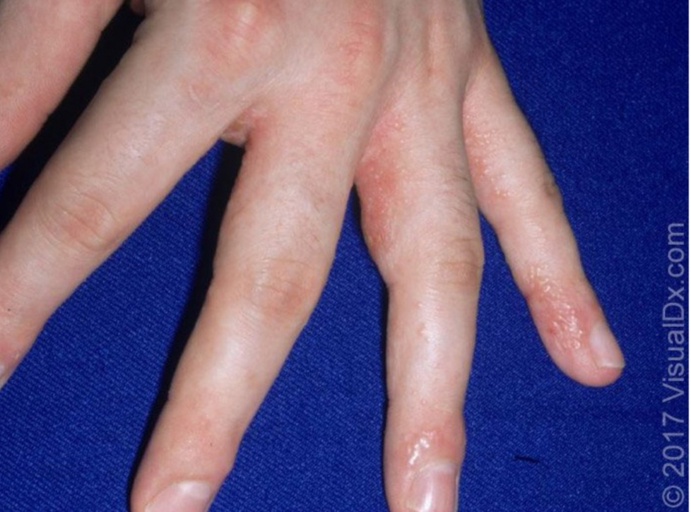 当然,少数情况下,脚上也会发生汗疱疹,手上也会发生手癣。