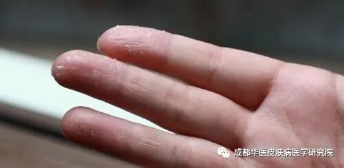 多见掌跖皮肤增厚,夏季水疱脱屑,入冬则皮肤开裂。