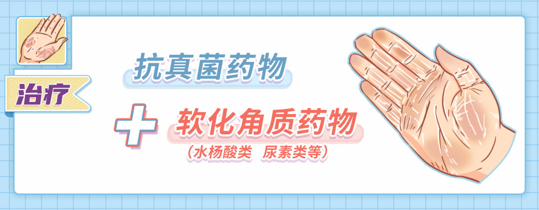 对于出现皮肤皲裂的情况,为了缓解疼痛,避免感染,我们要在抗真菌治疗的基础上,联合使用软化角质的药物,比如水杨酸类、尿素类药物。