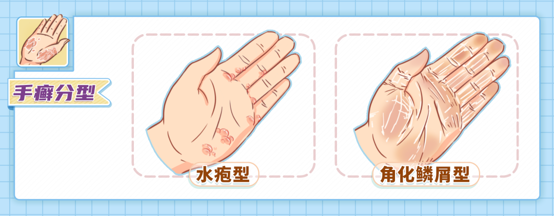 临床上,我们一般把手癣分为两大类:水疱型手癣、角化鳞屑型手癣。