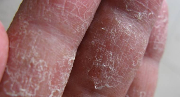 患者的皮损部位会出现大量小水庖,并且反复出现瘙痒症状,尤其夜间睡觉时以及白天不透气的鞋子运动时,瘙痒症状往往更严重,之后还可出现脱皮、皮肤皲裂、角质层增厚、疼痛、糜烂、渗液等症状。