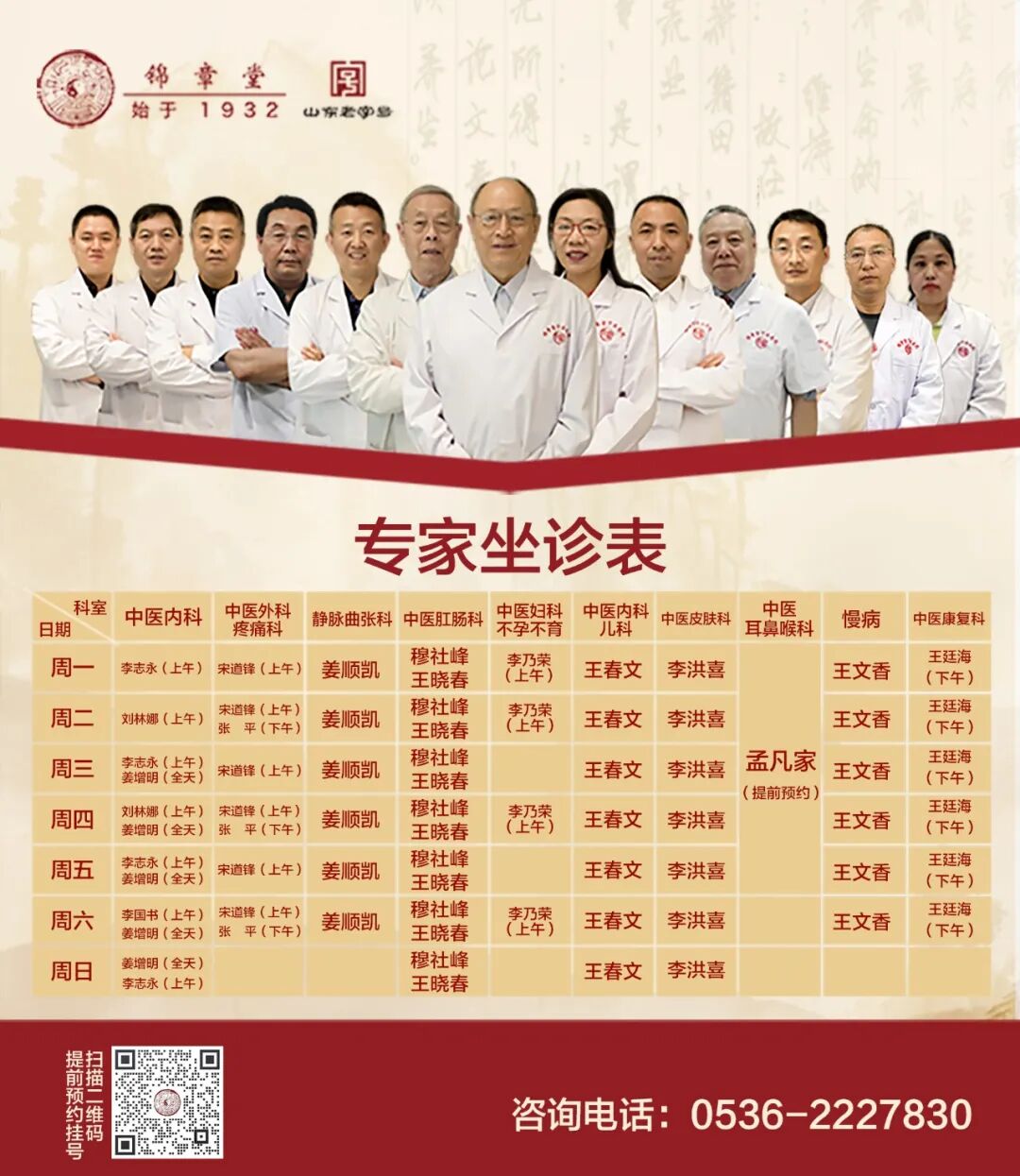 坐诊专家表