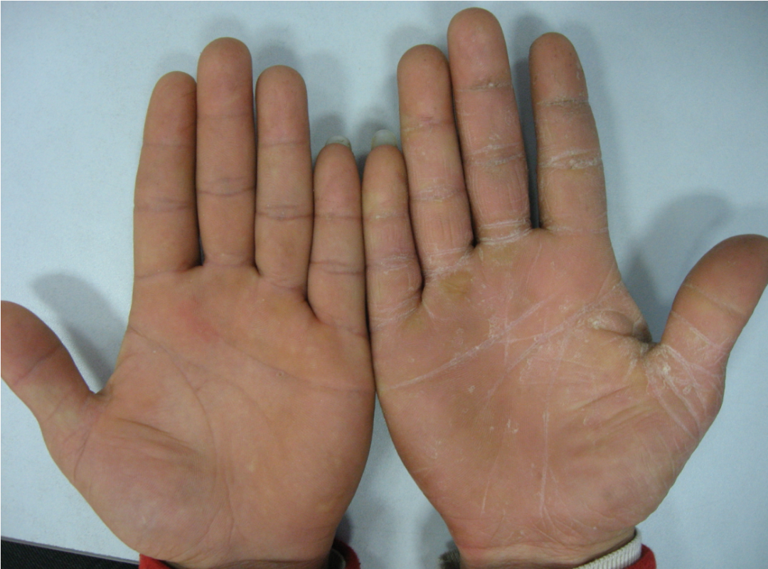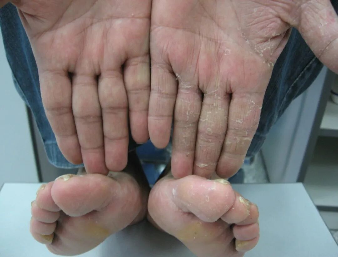 强调一点:不是手足部位的皮肤病都是手足癣,切记切记,其实手足湿疹也很常见,治疗方法与手足癣千差万别。