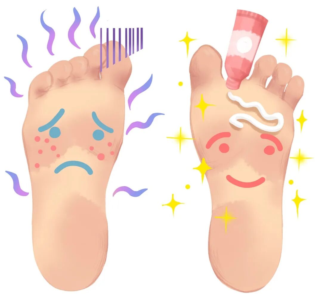 气温逐渐升高,手足癣病人越来越多,大部分患者对手足癣都有一知半解的认识,常常自行外用软膏制剂,但有些患者用药后疗效欠佳,手脚癣反复发作,并传染至手部,常常出现两足一手受累的典型表现。