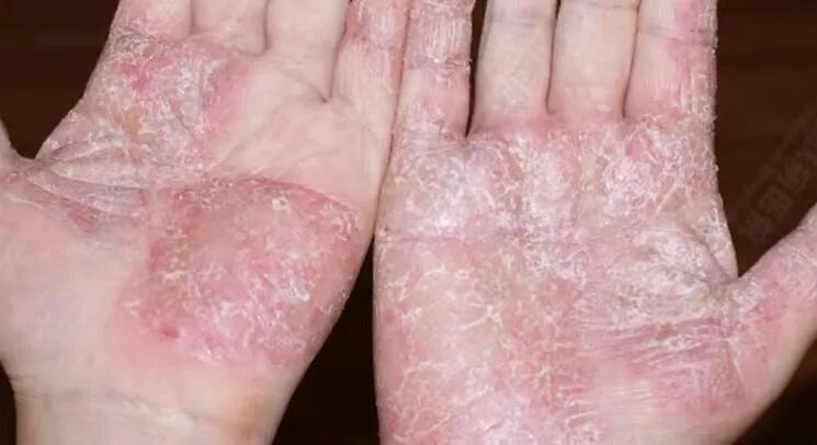 足跟、足跖、足旁部,皮肤干燥粗厚、角化过度,皮肤纹理增宽,易发生皲裂,四季皆可发生,以冬季多见或加重。