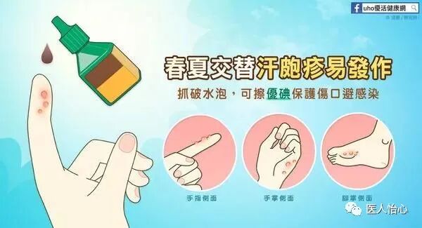 3.其他器官出现过敏反应:以汗疱疹来说,其属于体质引起的皮肤问题,据目前研究认为与过敏体质有一定关联性。所以,从患者除了脚部肌肤症状外,是否有其他如眼睛、鼻子等过敏反应,也可视为分辨汗疱疹与手足湿疹的其中一种方式。