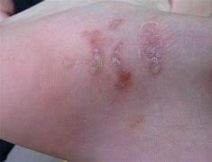初起为针尖发展的深在水疱,可融合成多房性大疱,经数天后干涸,呈领圈状脱屑。