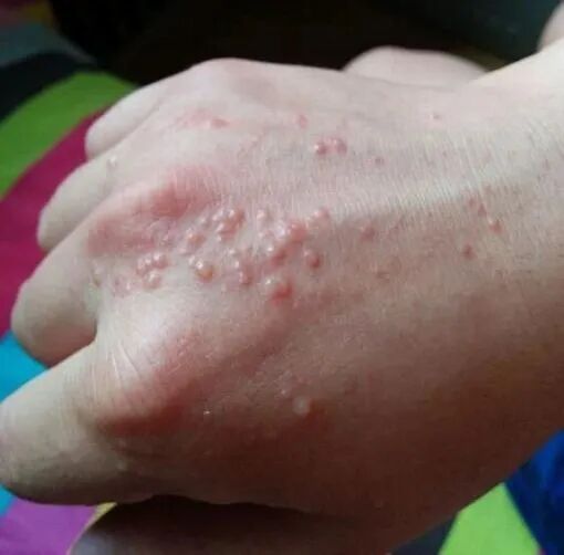 分布:湿疹患者手部比较潮湿,一般对称分布,左右手都会有。且除了发生在手足部位以外,身体的其他部位也可以累及。