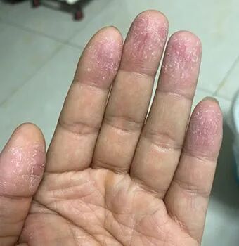 大部分人都应该经历过指部脱皮的现象,有时候甚至会产生疼痛感,脱皮厉害的还能看到皮肤上的细纹裂口,会出现渗液和痒痛感。