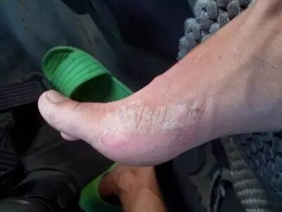 在足跖、足缘部,常有水疱成群或散在,局部皮肤潮红,有时继发细菌感染,水疱变为脓疱,以夏季多见。