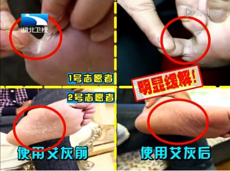 之前我们在艾灰妙用这篇文章(回顾文章请点此链接:《艾灰是宝,千万别扔!改善脚气、消炎止血、除味吸湿它都行!》)中提到过,湖北卫视《生活帮》栏目请了两位患有脚气的志愿者,用兑水后的艾灰每天涂抹患处,坚持一周后发现,两位患者的脚气问题都得到了明显缓解。