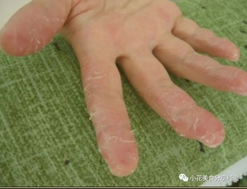 患者先是一只手出现脱皮,进而扩散到双手,双脚,这种情况出现的脱皮是手癣导致的。主要症状有手掌出现红斑、瘙痒。因为手癣有很强的传染性,同时危害健康,因此建议及时治疗防止感染给亲人。